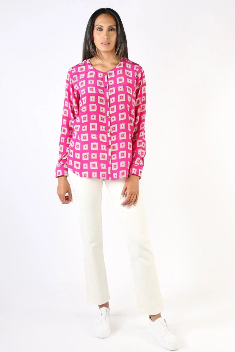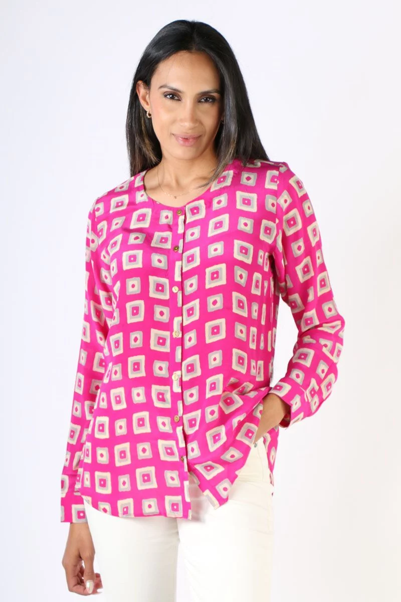 Your new everyday top is here just in time for summer. This Agni top is a perfect fit with its hand block printed geometric pattern, long sleeves and a relaxed look in silks that sashay with your every move. Pair it up with your favorited denims, a side swept up do, a blush lip and assorted wooden jewels