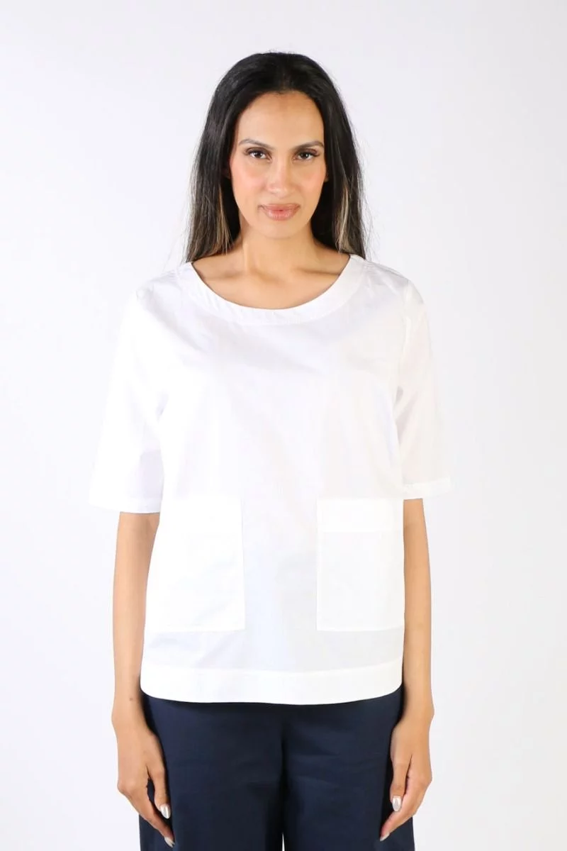 The cute Pati Top is an easy top that keeps your style game in check. In cotton, the top has a round neck and short sleeves. Featuring two front pockets, the top can be styled with each easy pants for a day out or tailored pants and blazer for a business look.