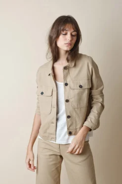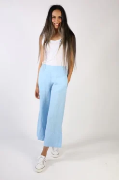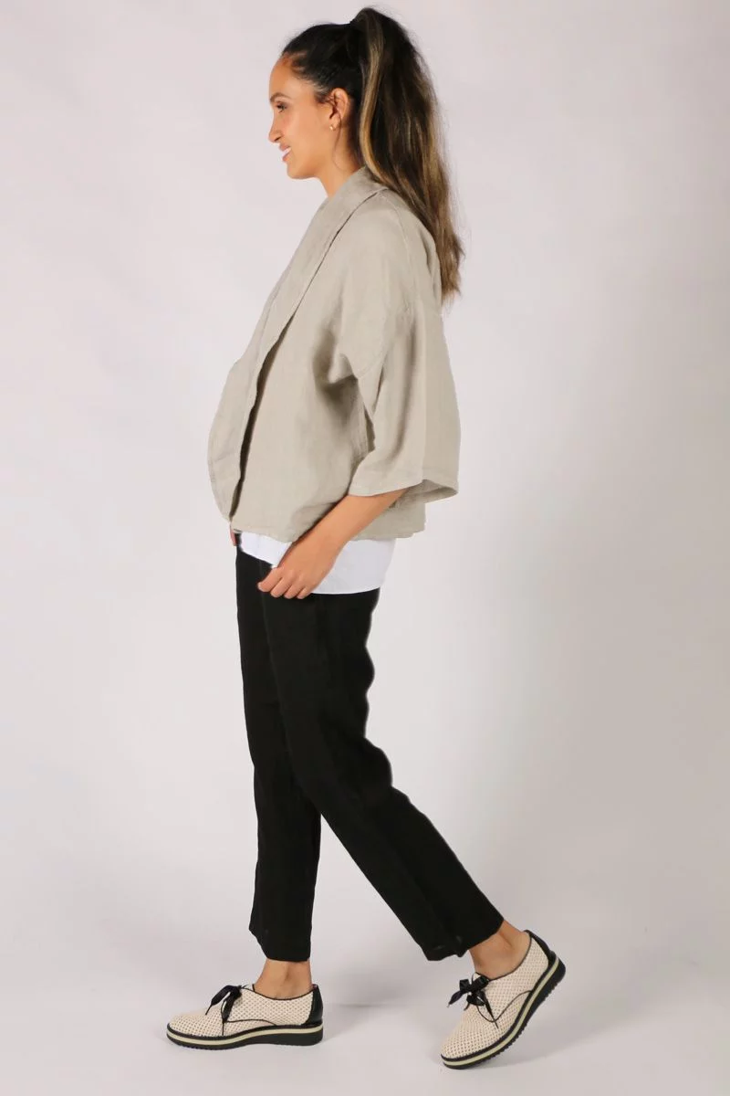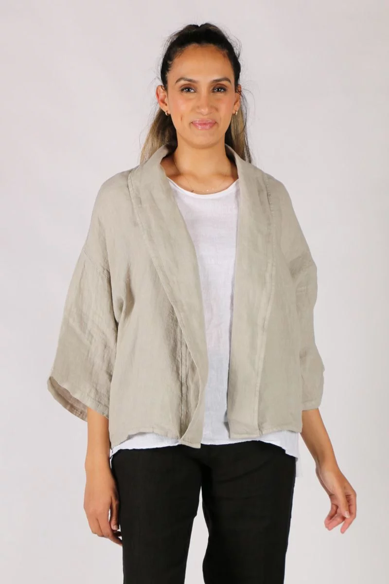 Add a sway to your everyday summer look this season in style with this Blueberry Jacket. In a relaxed front open look, this linen jacket has flared relaxed sleeves and falls just at your waist. Layer it up with an easy tank or throw on after a swim at the beach. Style 9512.