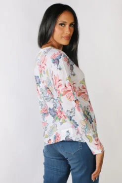An explosion of colour and print is just what you need this season from Emily Lovelock. In an overall printed french terry cotton, the crop top has a round neck and long sleeves. Finished with ribbed hems, style this crop top with easy denims or shorts. Style T891.