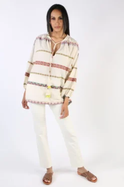 An easy long sleeved summer tee by Et Ici is your perfect summer staple. In a Washed Cotton And Jersey, it has a Panelled front. With a Round Neck and Drop Sleeve, style this Boxy Top with easy denim shorts or cotton pants. Style M14051.