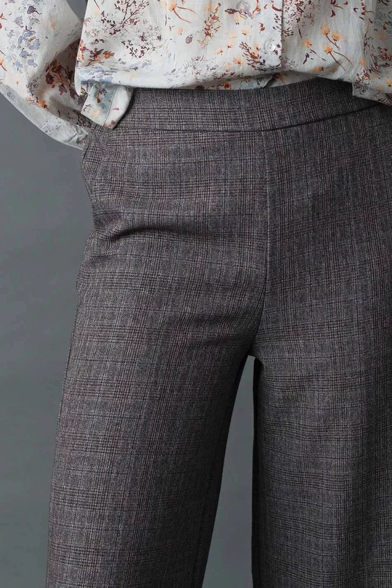 Step up your style game this season with Indi & Cold pants. In a woven Check, these tan pants with an Elastic Waist sit perfectly on you hips. With a Wide Leg, pair these tailored palazzo pants can take you from business to bar efforlessly. Style SA0289.