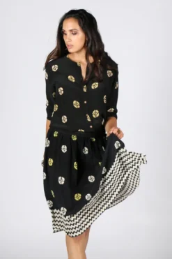 Add a little flair to your everyday look with this Hand block printed skirt in vibrant tones. With an overall pattern of tear drop and chevrons, this bright skirt is easily paired with any of your basics. An Elastic band fits your waist perfectly. Add in a pair of wedges, or sneakers, however you would like to style it and this skirt makes sure you stand out for all the right reasons.